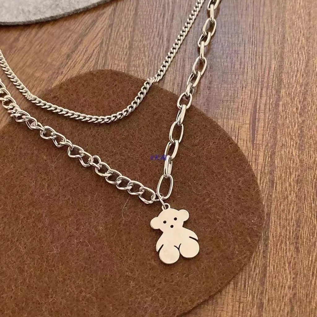 Look cute with this Double Layer Silver Bear Pendant Necklace. It features two chains with a sweet bear pendant that adds a playful touch. The silver finish is bright and stylish. You can use this product as a fun accessory for your casual outfits or give it as a gift to a friend. It is a great choice for occasions like birthday parties, school days, or weekend outings.