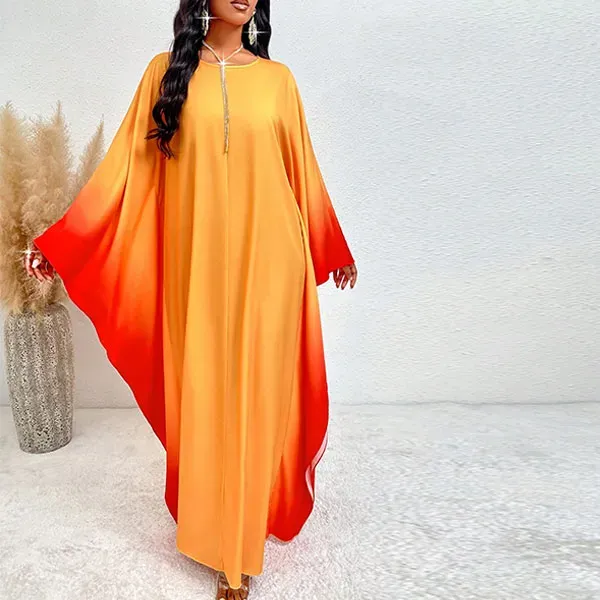 Look bright and lovely in this Elegant Sunset Flow Maxi Dress. It features a beautiful gradient print that looks like a sunset. The long flowing skirt moves gracefully when you walk. The fabric is soft and light against your skin. You can use this product as a stunning outfit for a beach party or a nice dress for a holiday. It is a great choice for occasions like summer weddings, evening dinners, or tropical vacations.