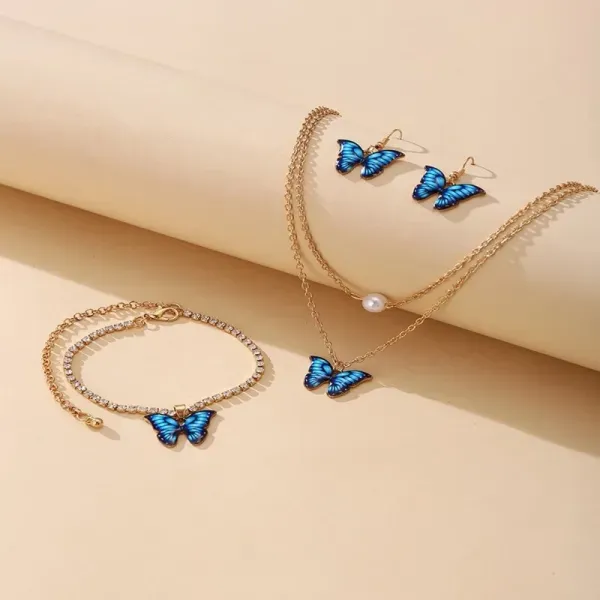 Enhance your look with this Gold Plated Braided Butterfly Jewelry Set. It features a unique braided chain design with a beautiful butterfly centerpiece. The gold plating adds a luxurious shine to the set. You can use this product as a complete accessory kit to wear with a dress for a party or give it as a thoughtful gift. It is a great choice for occasions like weddings, birthday parties, or festive celebrations.