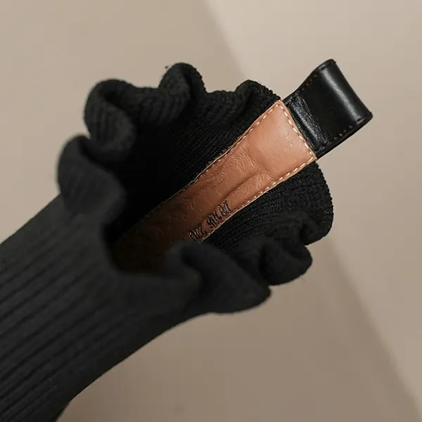 Women's Black Fashion Sock Boots with Pearl Chain